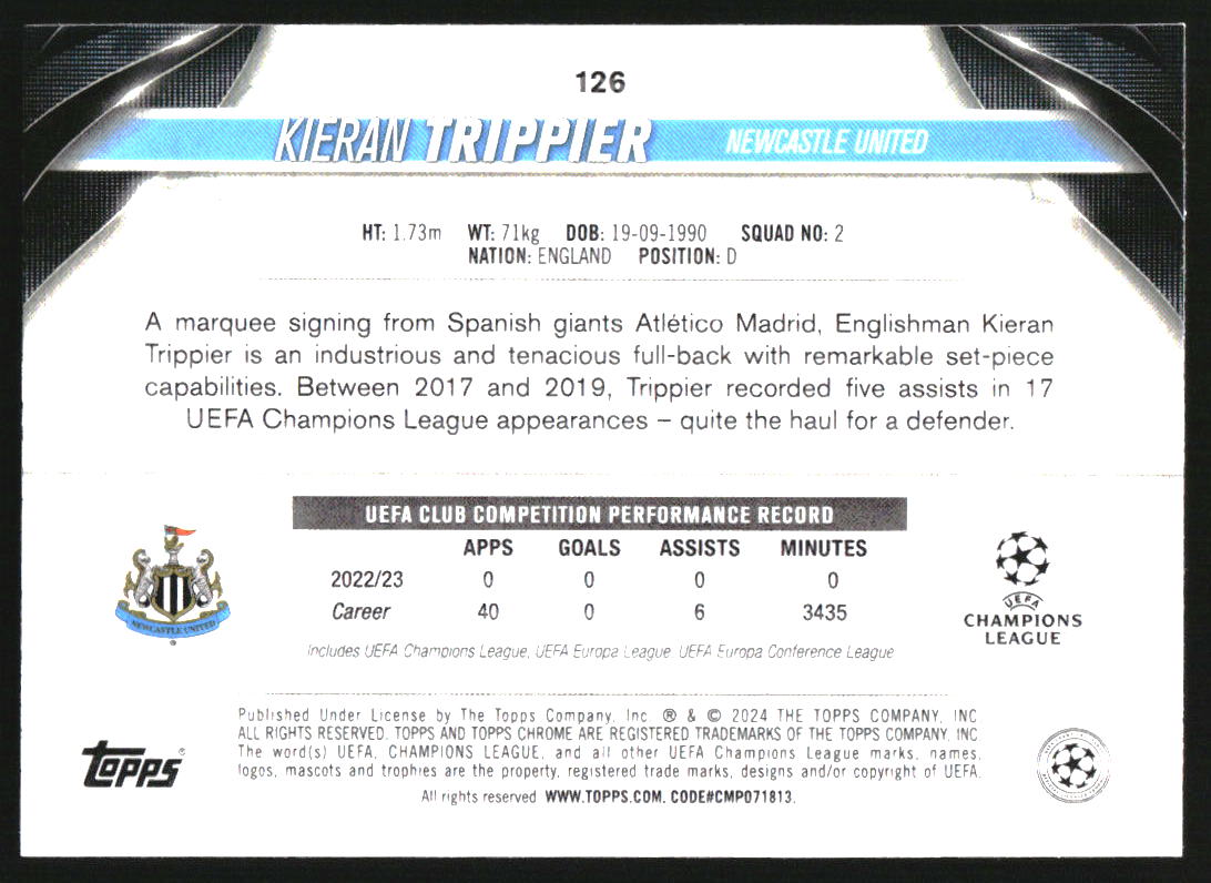 2023-24 Topps Chrome UEFA Orange Refractors #126 Kieran Trippier /25