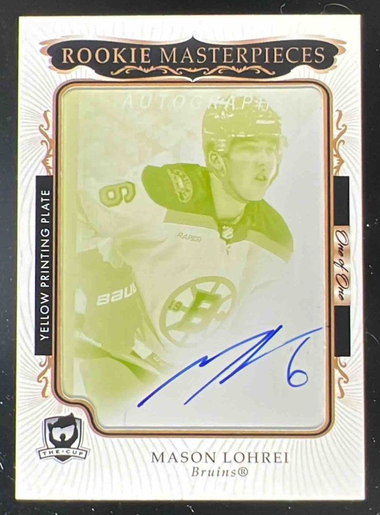 2023-24 The Cup Printing Plate Yellow Autograph Mason Lohrei RC Auto 1/1
