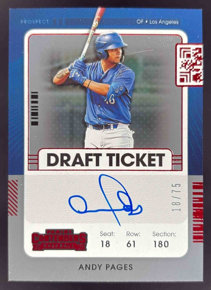 2021 Panini Contenders Prospect Ticket Draft Red #PT-AP Andy Pages Auto /75