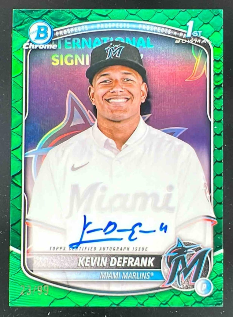 2025 Bowman Chrome Reptilian Green Refractor #CPA-KD Kevin Defrank RC Auto /99