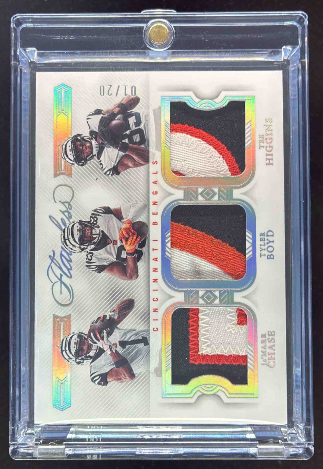 2022 Flawless Triple Patches Silver Ja'Marr Chase Tee Higgins Tyler Boyd /20