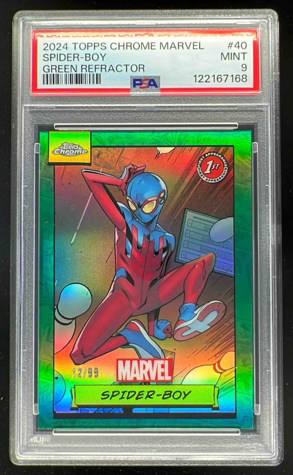 2024 Topps Chrome Marvel Green Refractor #40 Spider-Boy /99 PSA 9