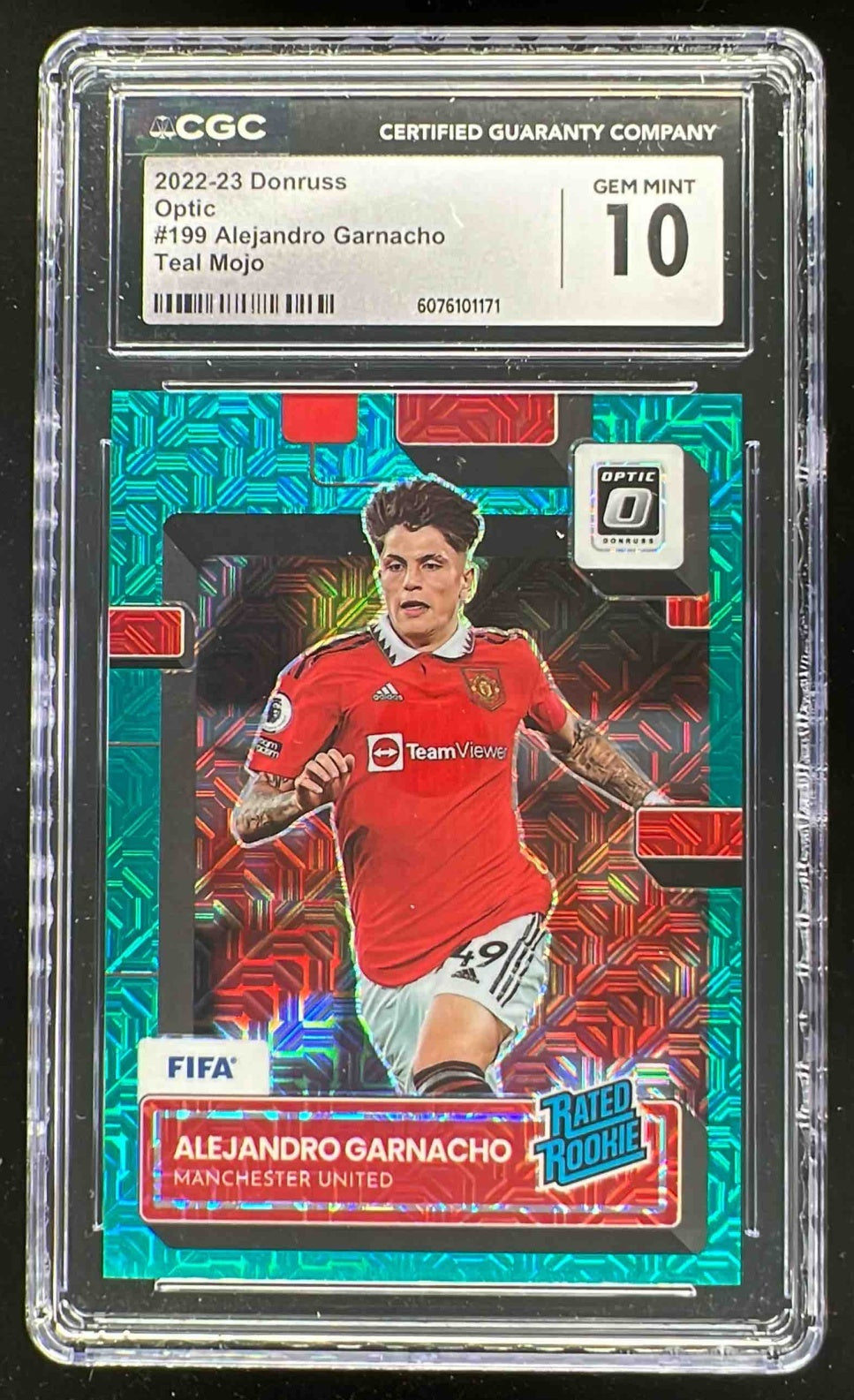 2022 Donruss Optic Teal Mojo #199 Alejandro Garnacho RC Rated Rookie /49 CGC 10