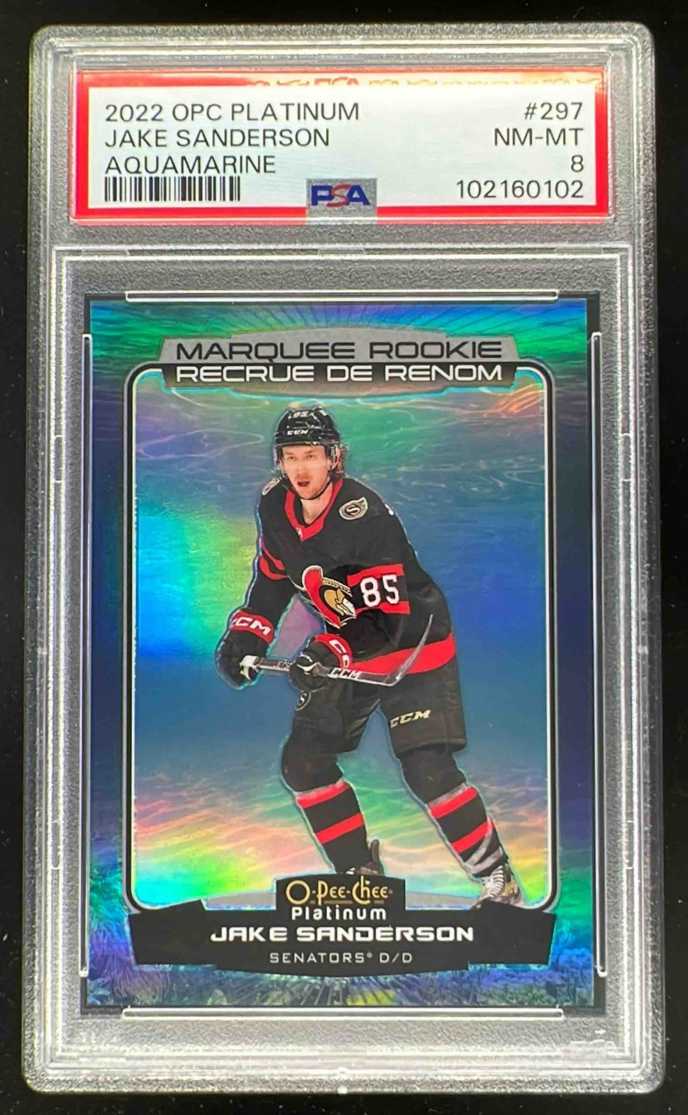 2022 O-Pee-Chee Platinum Aquamarine #297 Jake Sanderson RC /149 PSA 8