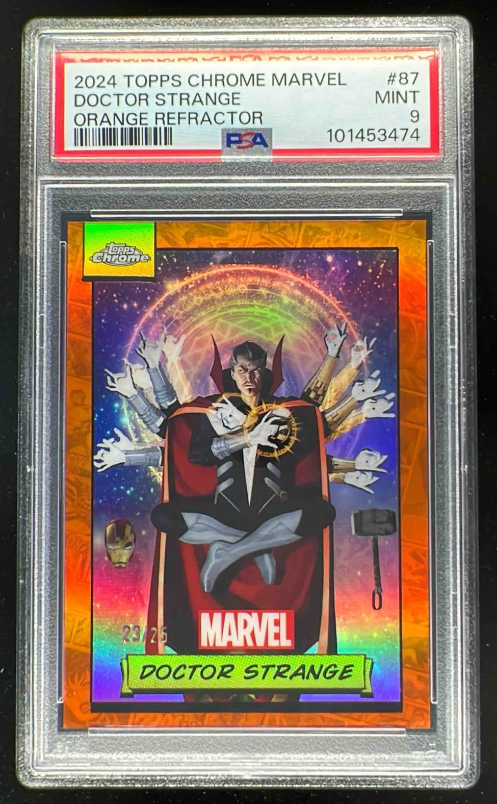 2024 Topps Chrome Marvel Orange Refractor #87 Doctor Strange /25 PSA 9
