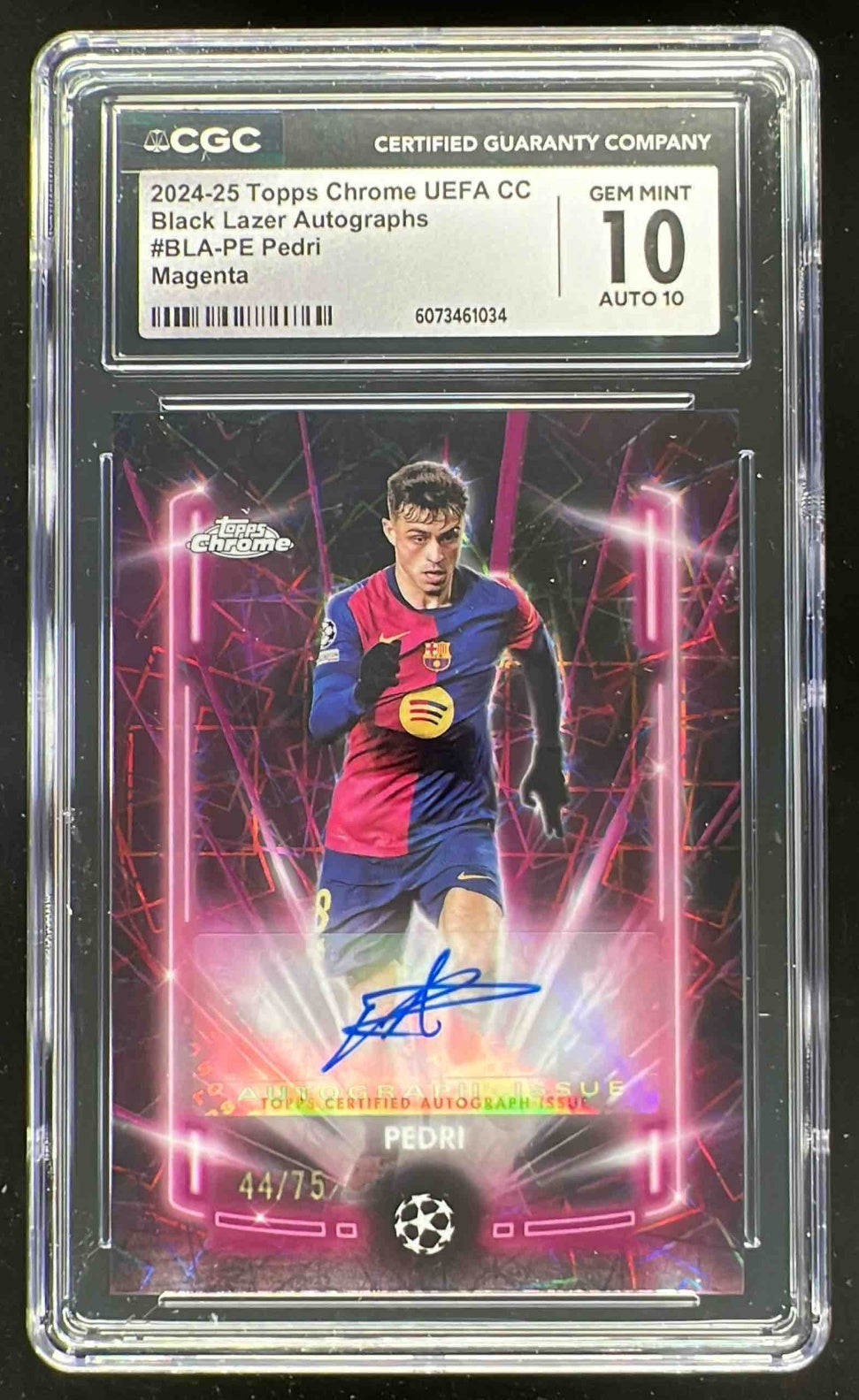 2024-25 Topps Chrome Black Lazer Magenta Lazer #BLA-PE Pedri Auto /75 CGC 10