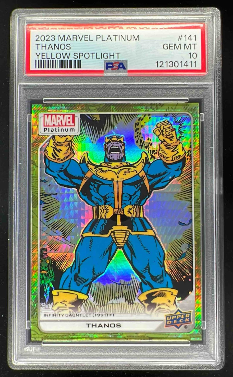 2023 Upper Deck Marvel Platinum Yellow Spotlight #141 Thanos /399 PSA 10