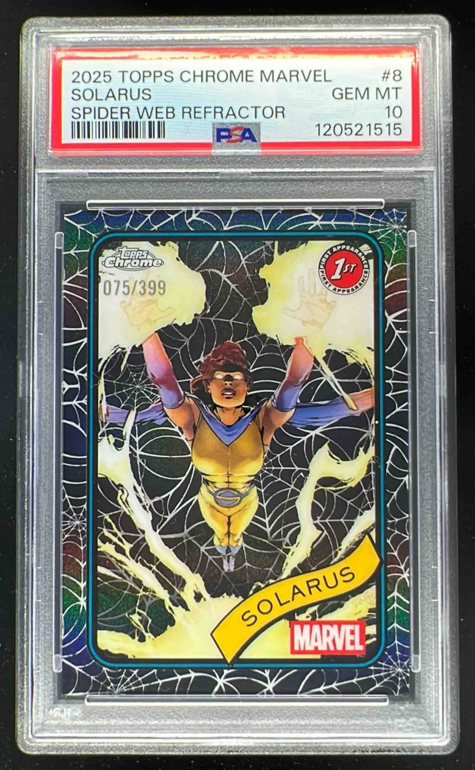 2025 Topps Chrome Marvel Spider Web Refractor #8 Solarus /399 PSA 10