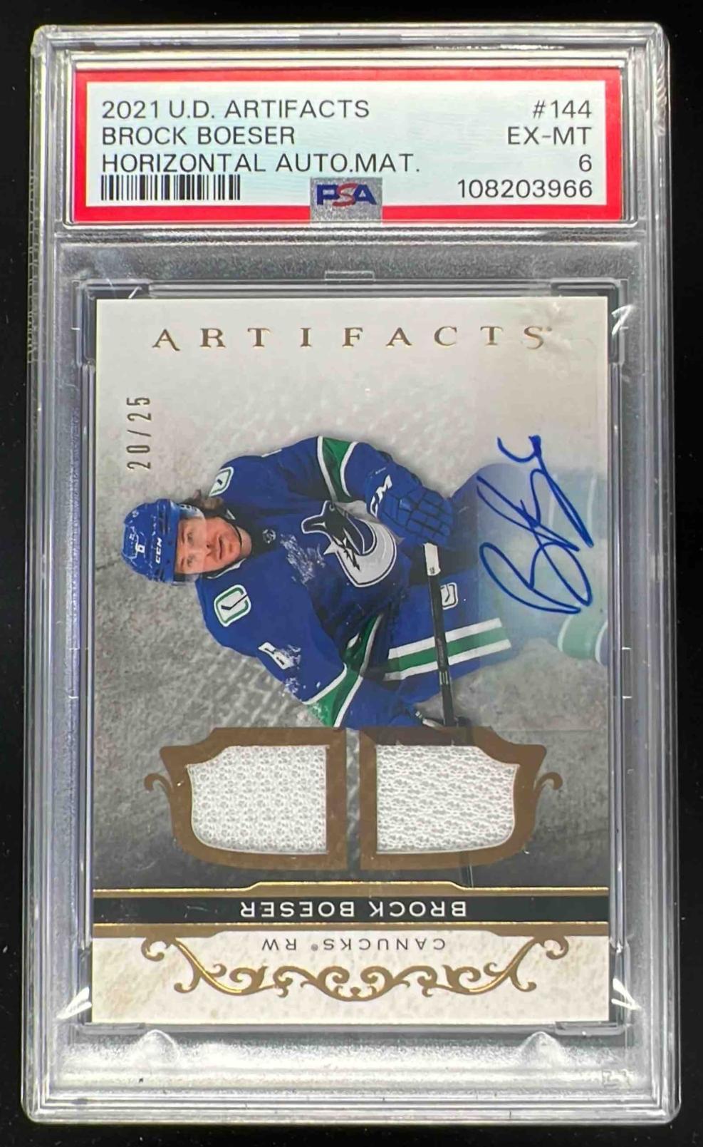2021 Artifacts Horizontal Auto Material Gold #144 Brock Boeser Auto /25 PSA 6