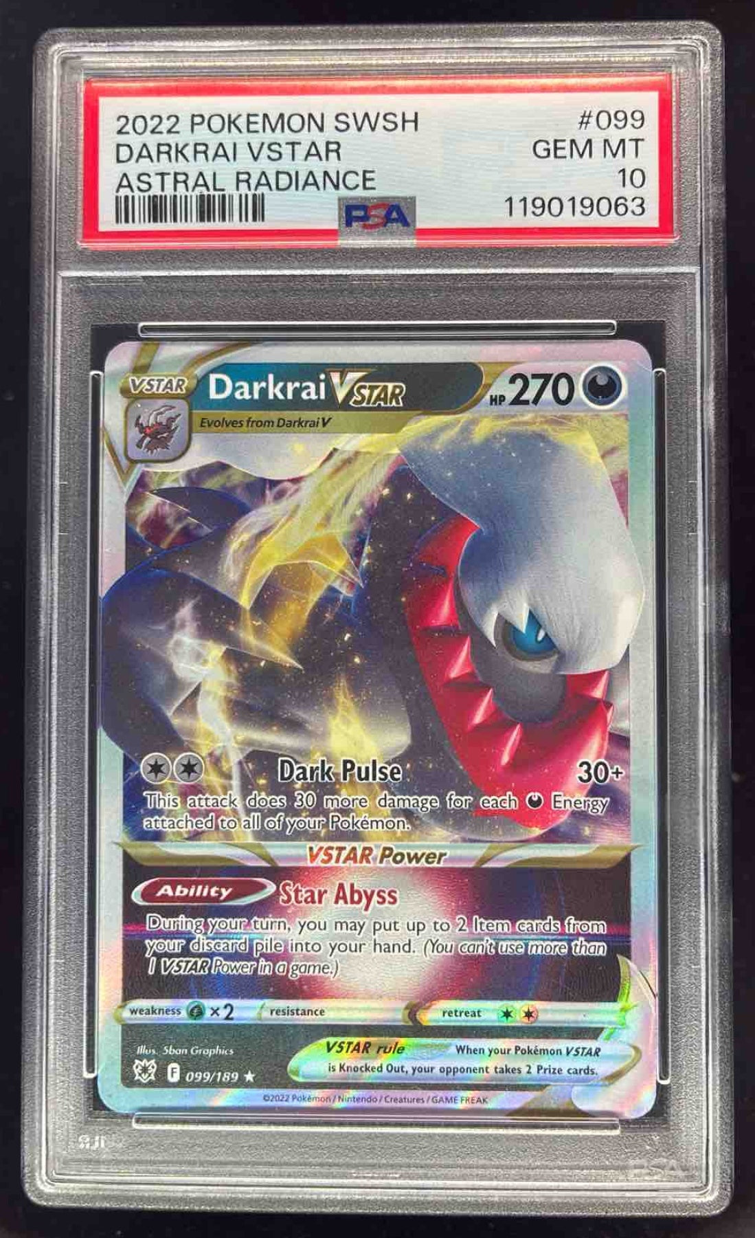 2022 Pokemon Sword & Shield Astral Radiance #099/189 Darkrai VST PSA 10