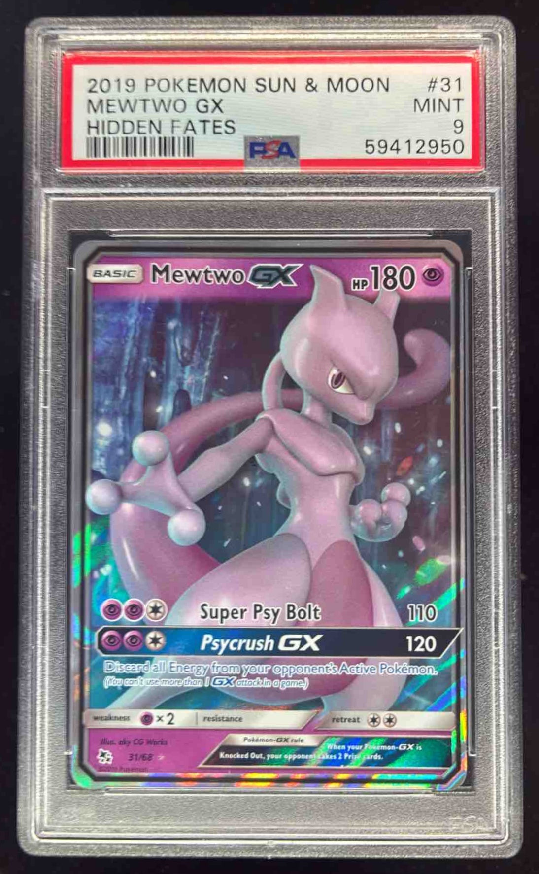 2019 Pokemon SM Hidden Fates #31/68 Mewtwo GX PSA 9