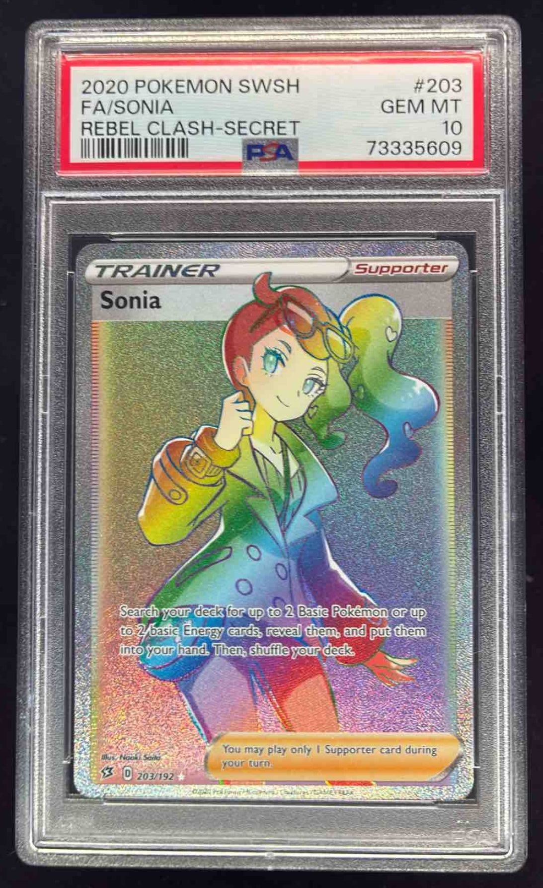 2020 Pokemon Sword & Shield Rebel Clash #203/192 Sonia PSA 10