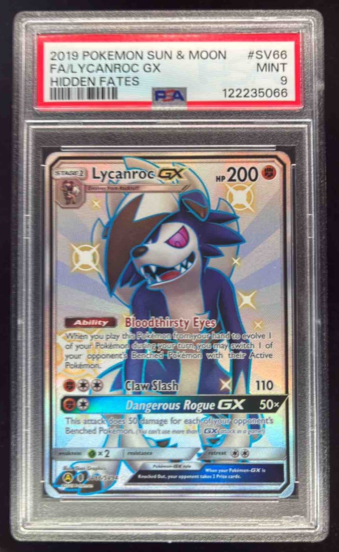 2019 Pokemon SM Hidden Fates #SV66/SV94 Lycanroc GX PSA 9