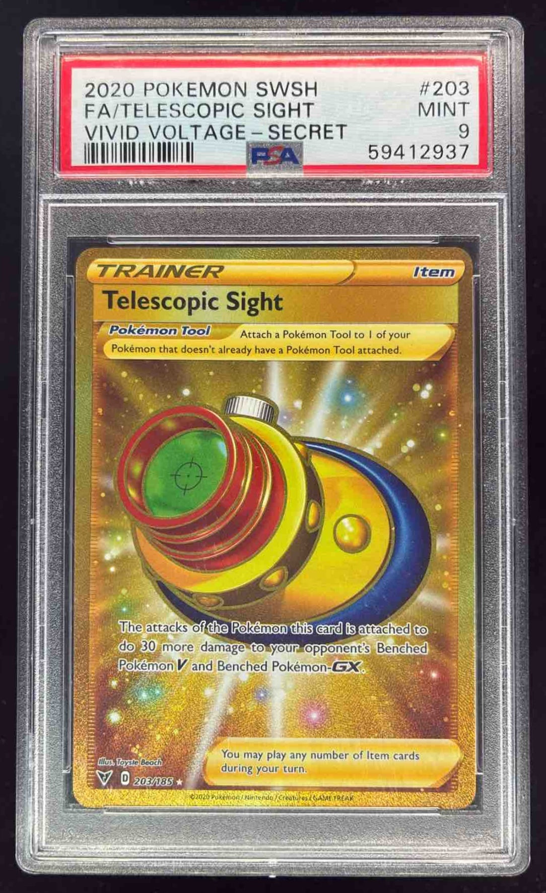 2020 Pokemon Sword & Shield Vivid Voltage #203/185 Telescopic Sight PSA 9