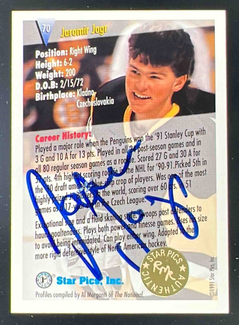 1991 Star Pics #70 Jaromir Jagr Autograph Auto