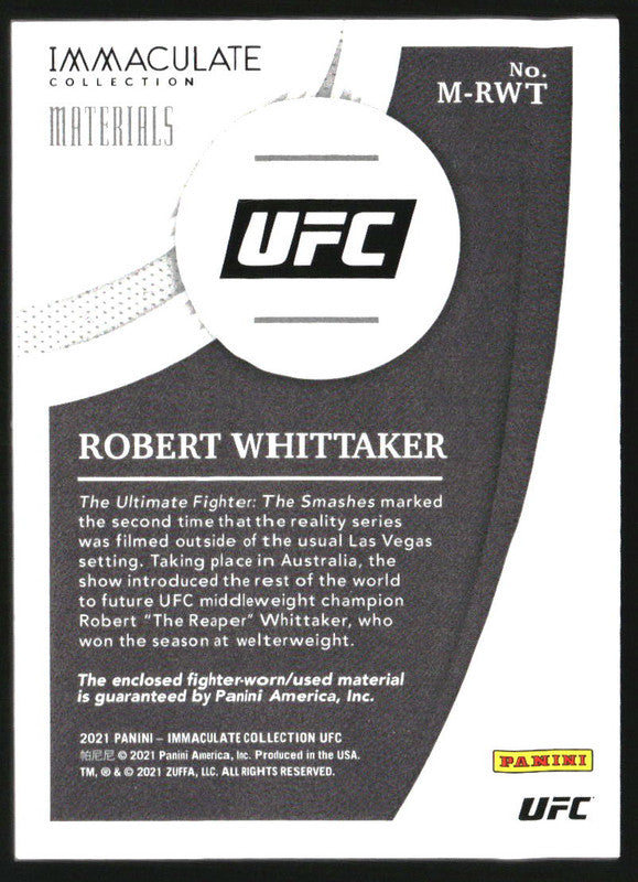 2021 Immaculate Collection UFC Materials Robert Whittaker /99