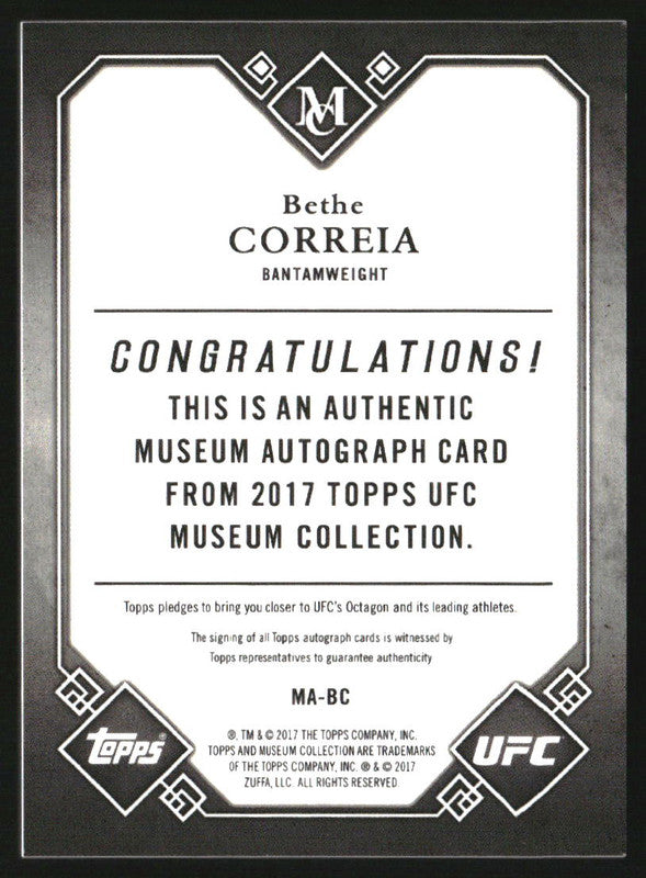 2017 Topps UFC Museum Collection Museum Autographs Copper Bethe Correia Auto /25