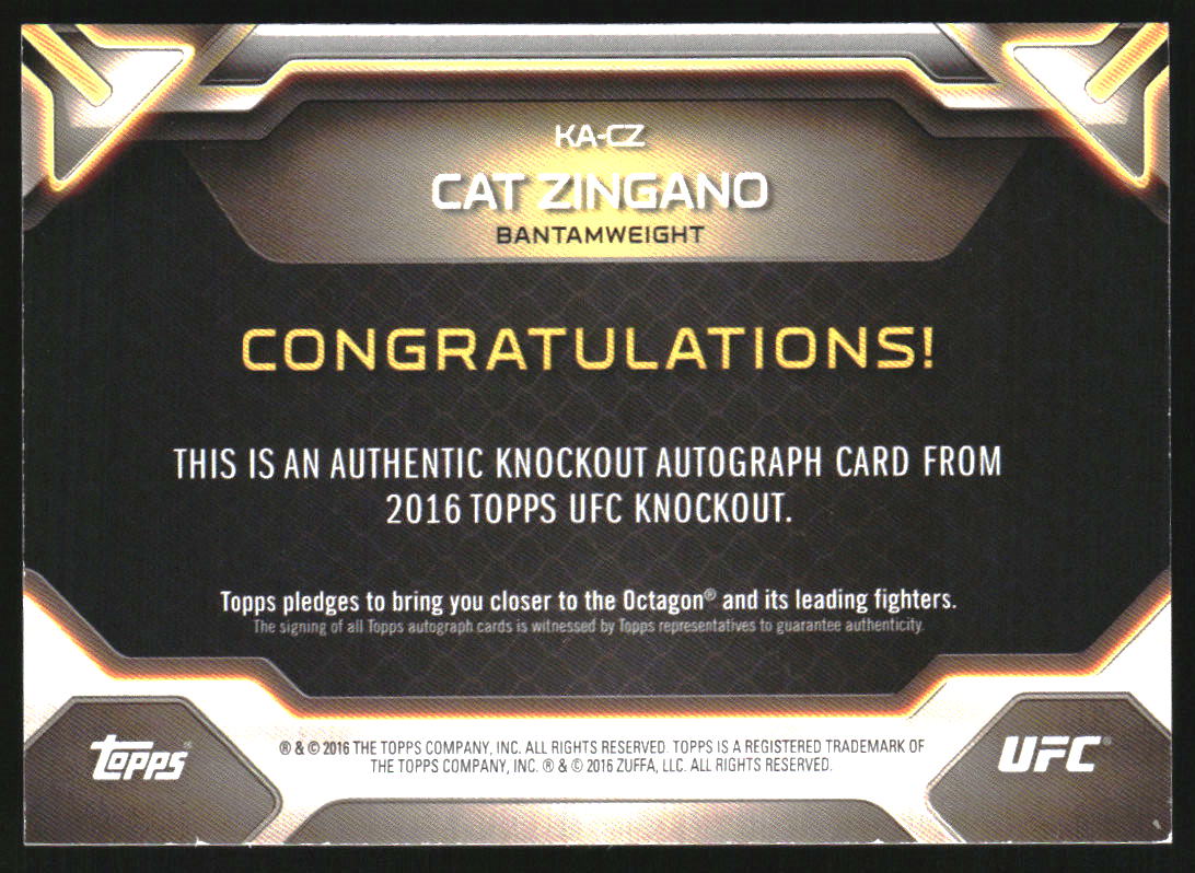 2016 Topps UFC Knockout Silver Autograph #83 Cat Zingano Auto /239