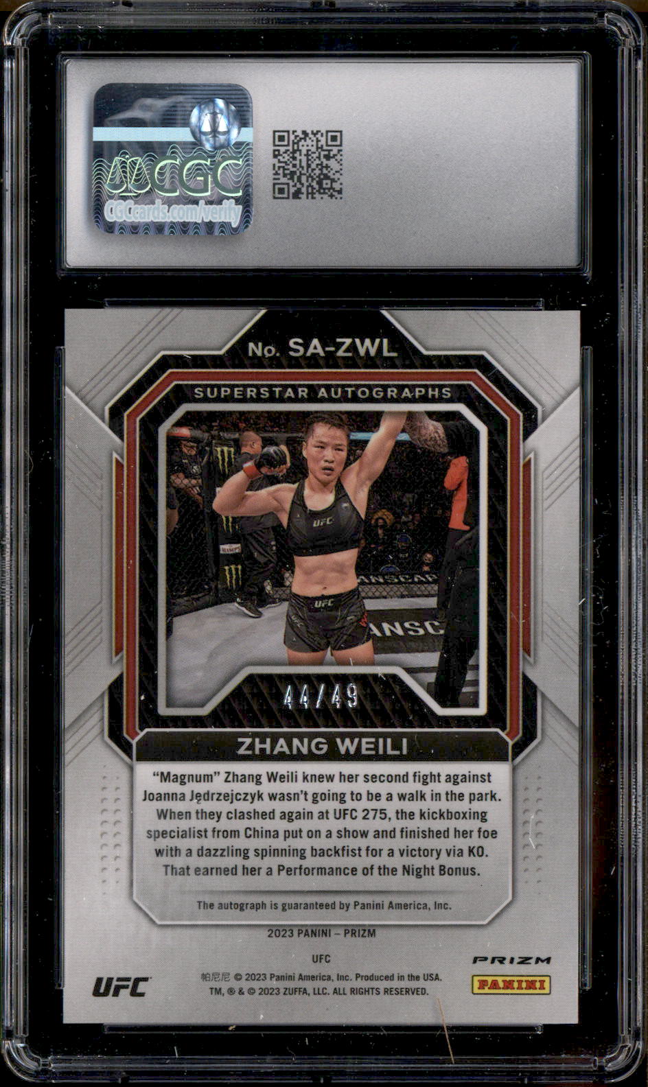 2023 Panini Prizm UFC Superstar Autograph Blue Zhang Weili Auto /49 CGC 10