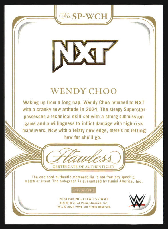 2024 Panini Flawless WWE Signature Prime Materials Wendy Choo Auto /25