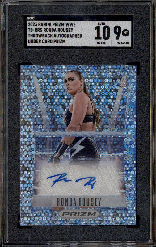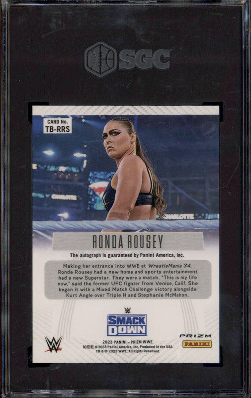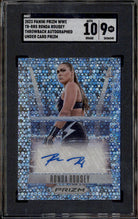 2023 Panini Prizm WWE Throwback Auto Under Card Prizm #TB-RRS Ronda Rousey SGC 9