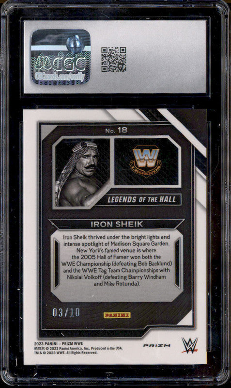2023 Panini Prizm WWE Gold Legends of the Hall #18 Iron Sheik /10 CGC 10
