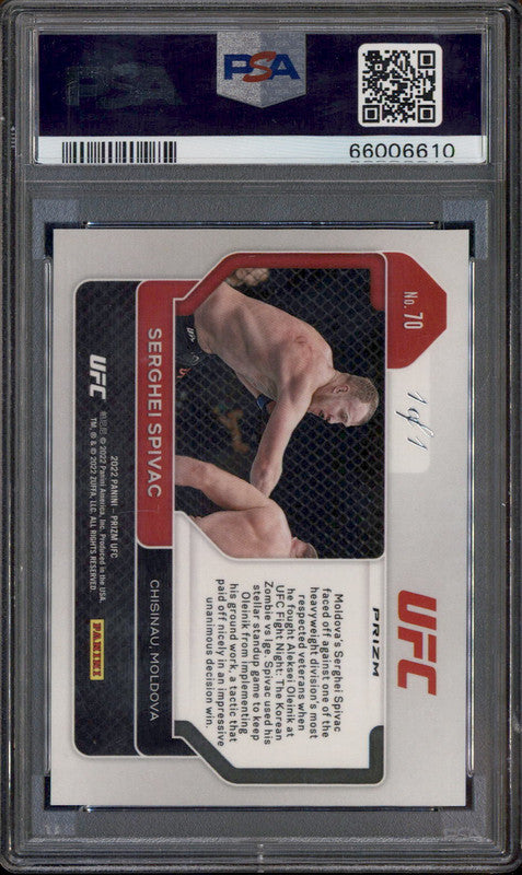 2022 Panini Prizm UFC Black Prizms #70 Serghei Spivac RC 1/1 PSA 8