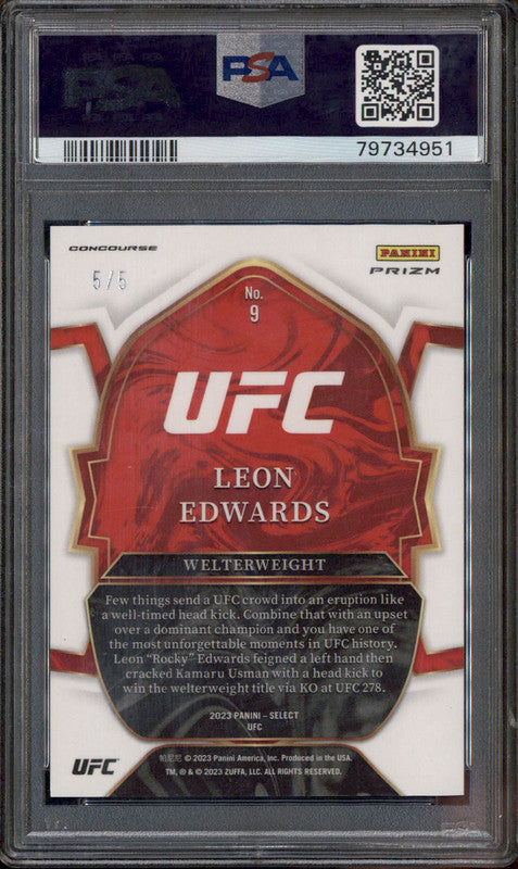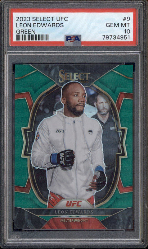 2023 Panini Select UFC Green Prizms #9 Leon Edwards /5 PSA 10