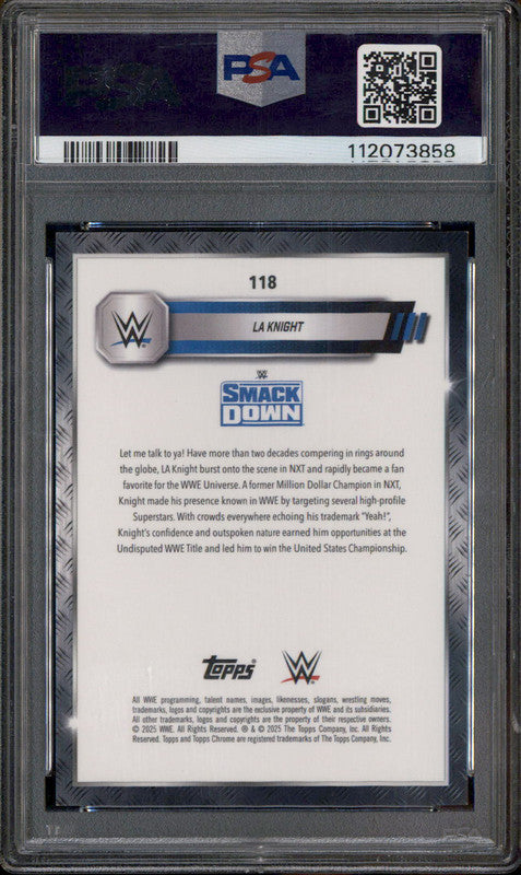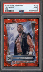 2025 Topps Chrome Sapphire WWE Chrome Red Refractor #118 LA Knight /5 PSA 9