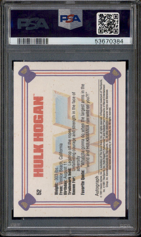 1991 Classic WWF Superstars #52 Hulk Hogan PSA 9