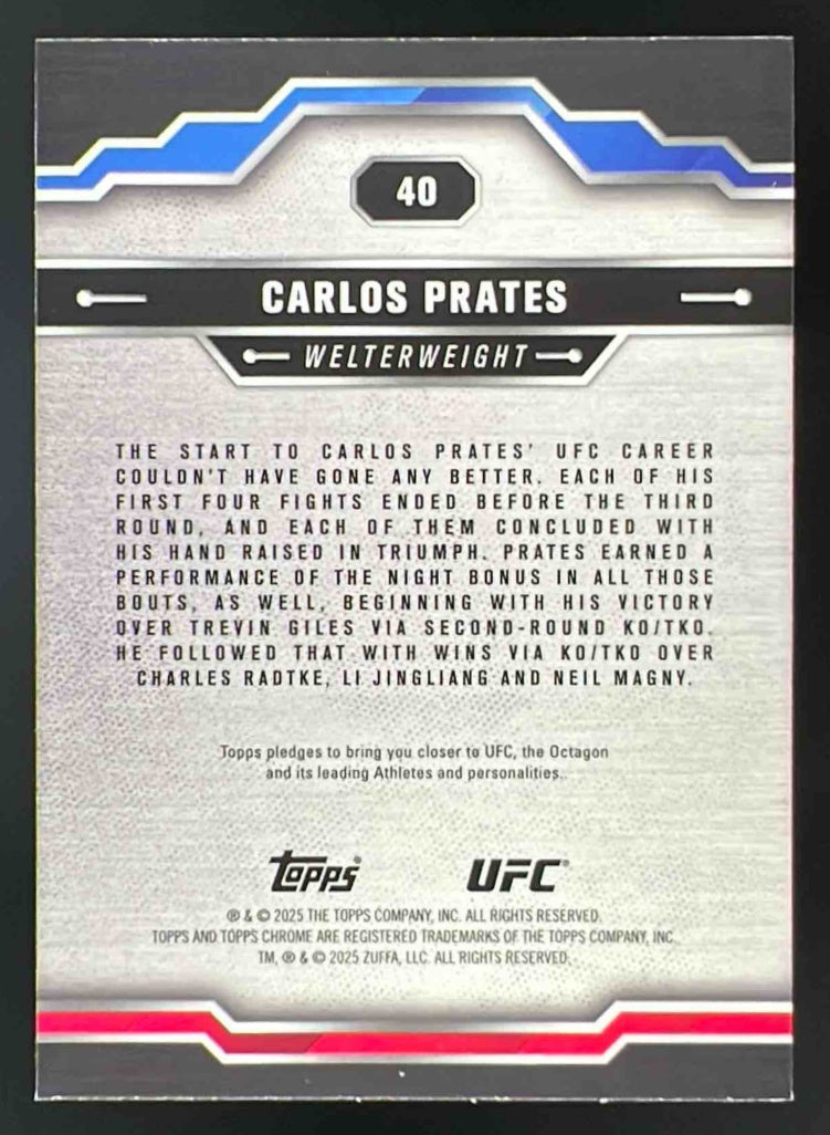 2025 Topps UFC Chrome Green Refractor #40 Carlos Prates RC /99