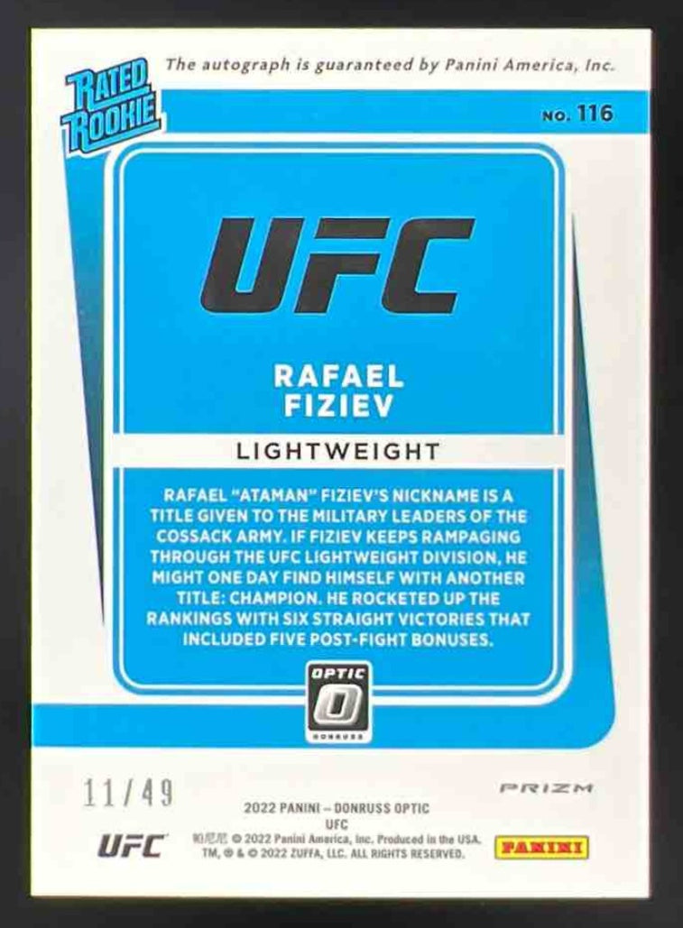 2022 Donruss Optic UFC Optic Signatures Blue #116 Rafael Fiziev RC Auto /49