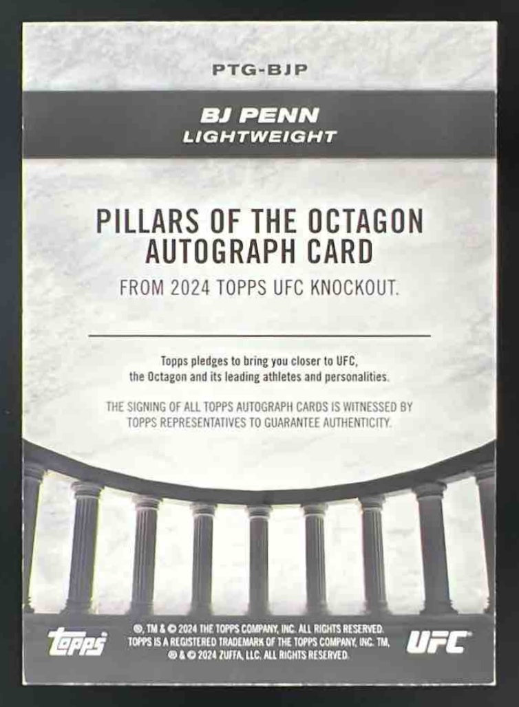 2024 Topps Knockout UFC Pillars of the Octagon Blue #PTG-BJP BJ Penn Auto /50