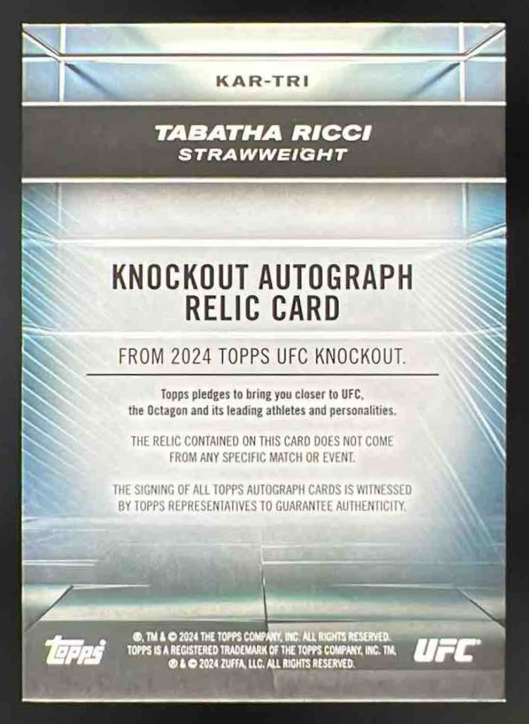 2024 Topps Knockout UFC Knockout Autograph Relics Tabatha Ricci Auto /199