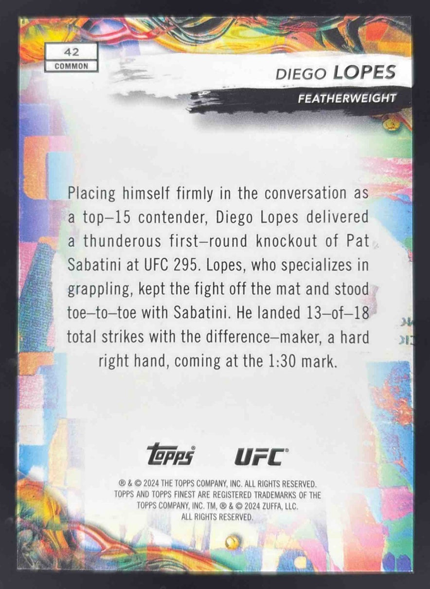 2024 Topps Finest UFC Gold Shimmer Refractors #42 Diego Lopes Common RC /39
