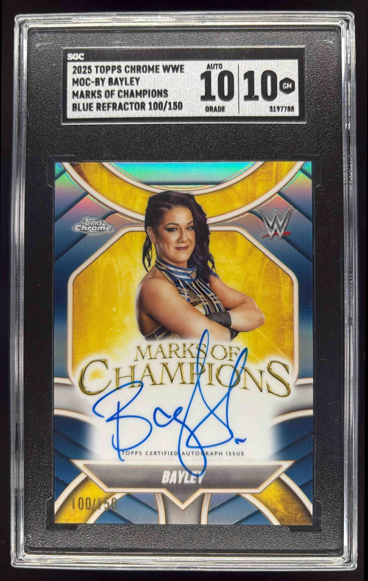 2025 Topps Chrome WWE Marks of Champions Blue Refractors Bayley Auto /150 SGC 10