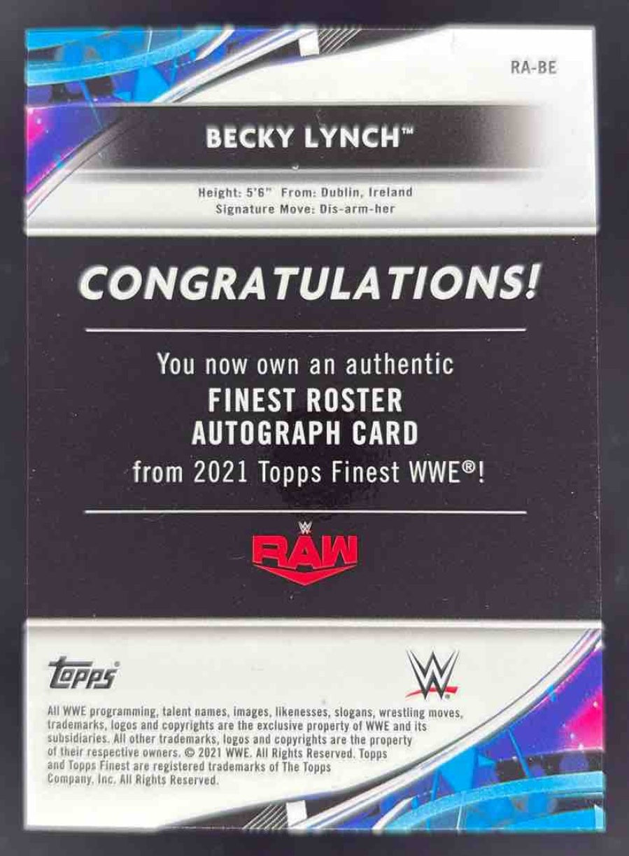 2021 Topps Finest WWE Superstar Autographs Gold #RA-BE Becky Lynch Auto /50