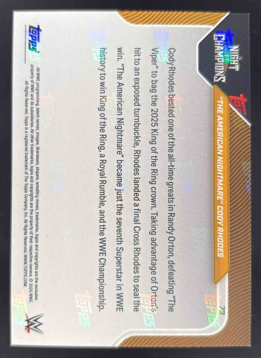 2025 Topps Now WWE #73 The American Nightmare Cody Rhodes /25