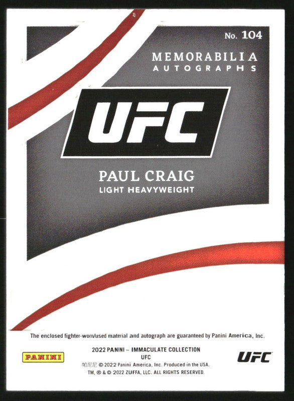 2022 Immaculate Collection UFC Rookie Memorabilia Auto Red Paul Craig RC /49