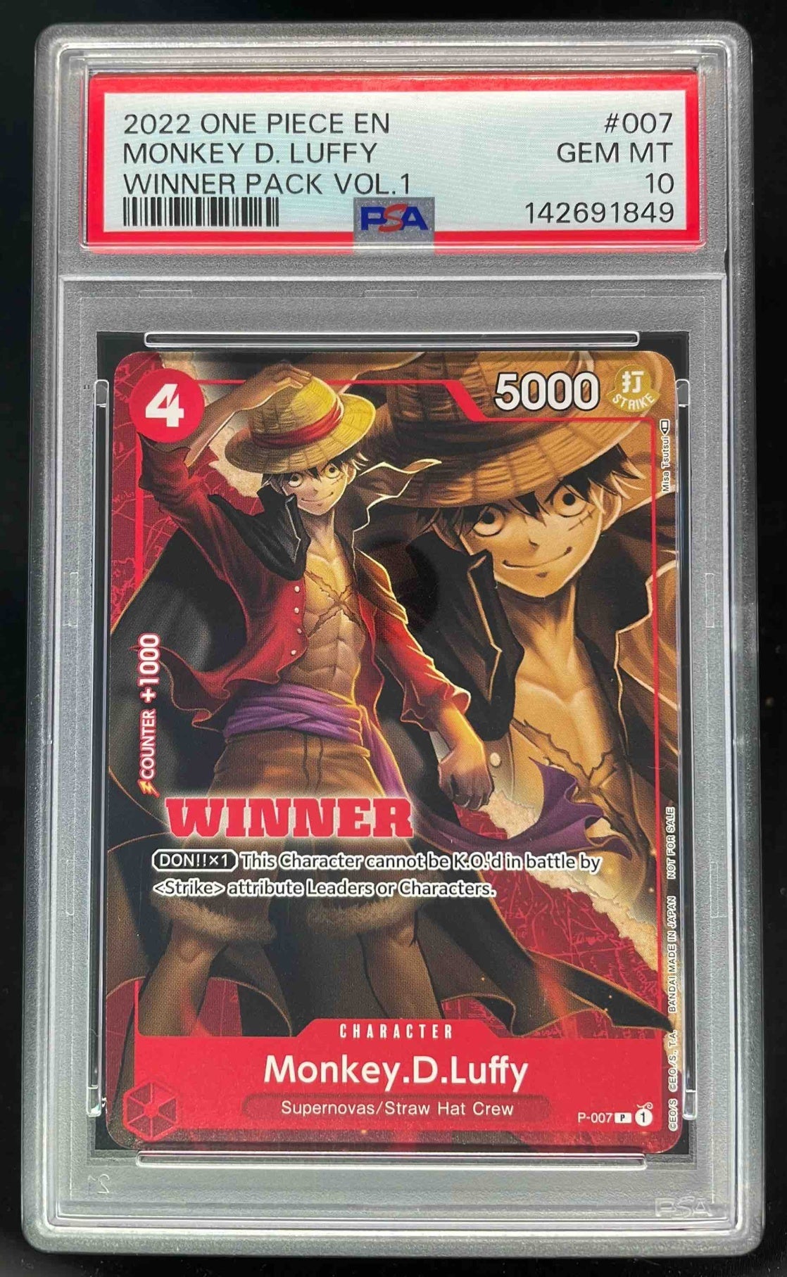 2022 One Piece EN Winner Pack Vol. 1 #007 Monkey D Luffy PSA 10
