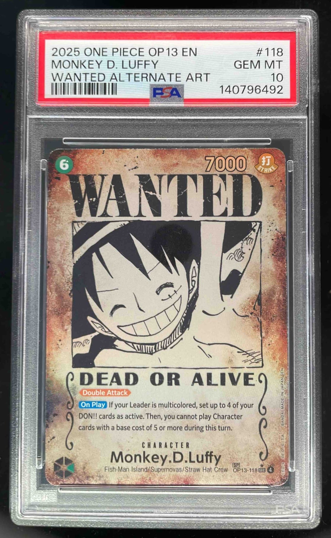 2025 One Piece OP13 EN #118 Monkey D Luffy Wanted Alternate Art PSA 10