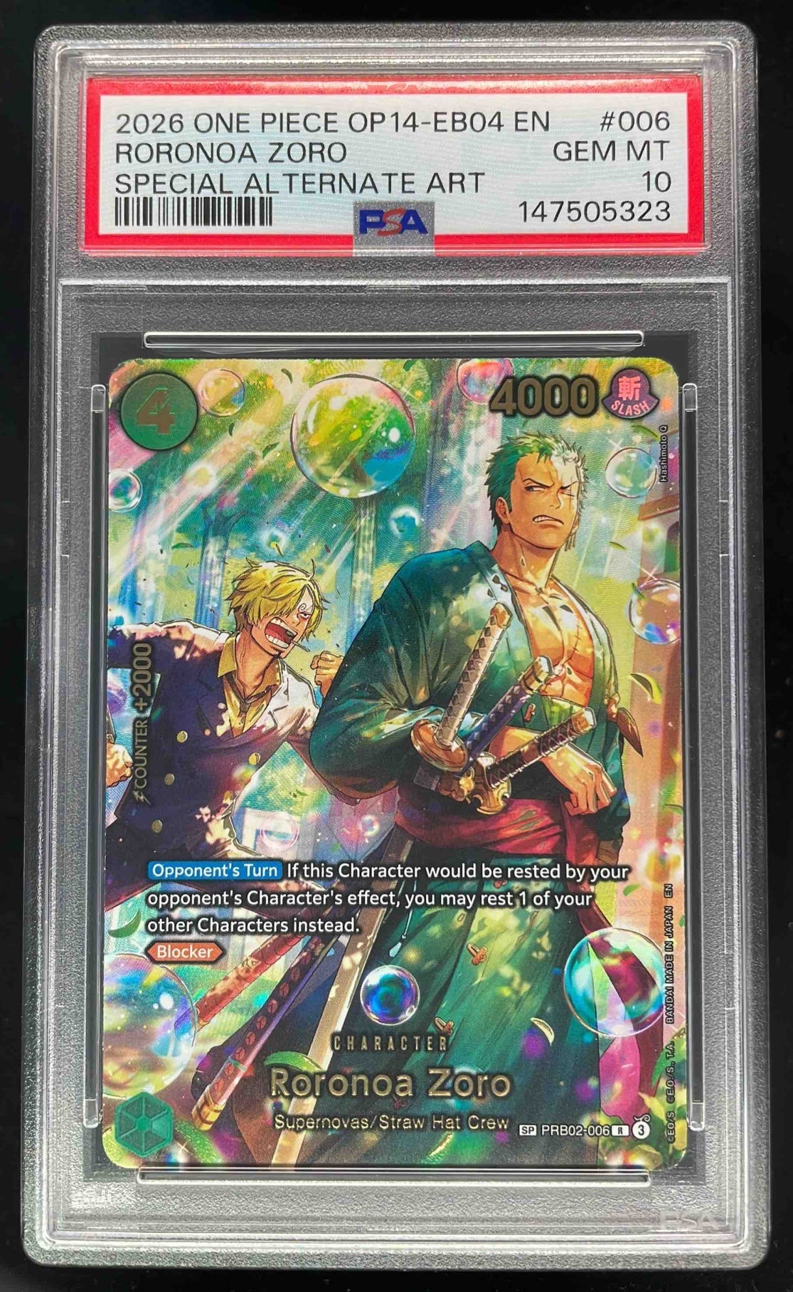 2026 One Piece OP14 EB04 EN #006 Roronoa Zoro Special Alternate Art PSA 10