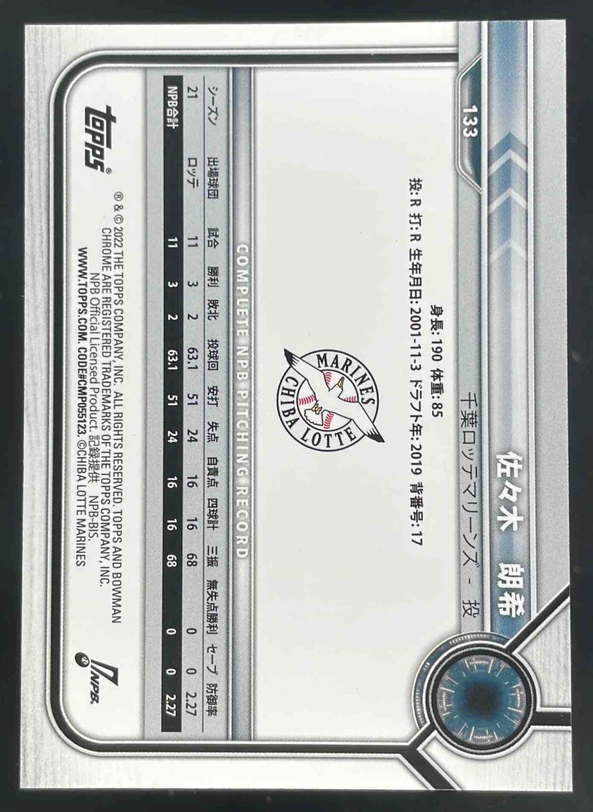 2022 Bowman NPB Nippon Professional Baseball Chrome #133 Roki Sasaki