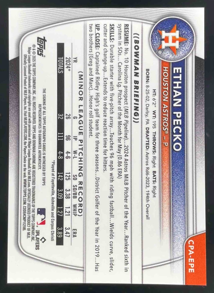 2025 Bowman Chrome Prospect Autograph #CPA-EPE Ethan Pecko RC Auto