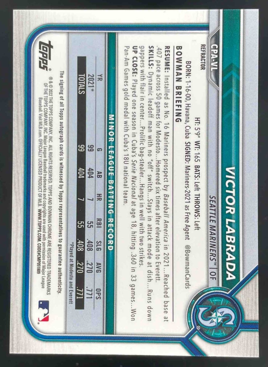 2022 Bowman Chrome Refractor #CPA-VL Victor Labrada Autograph RC Auto /499