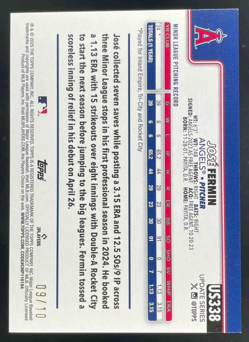 2025 Topps Update Black Holo Foil #US338 Jose Fermin RC /10