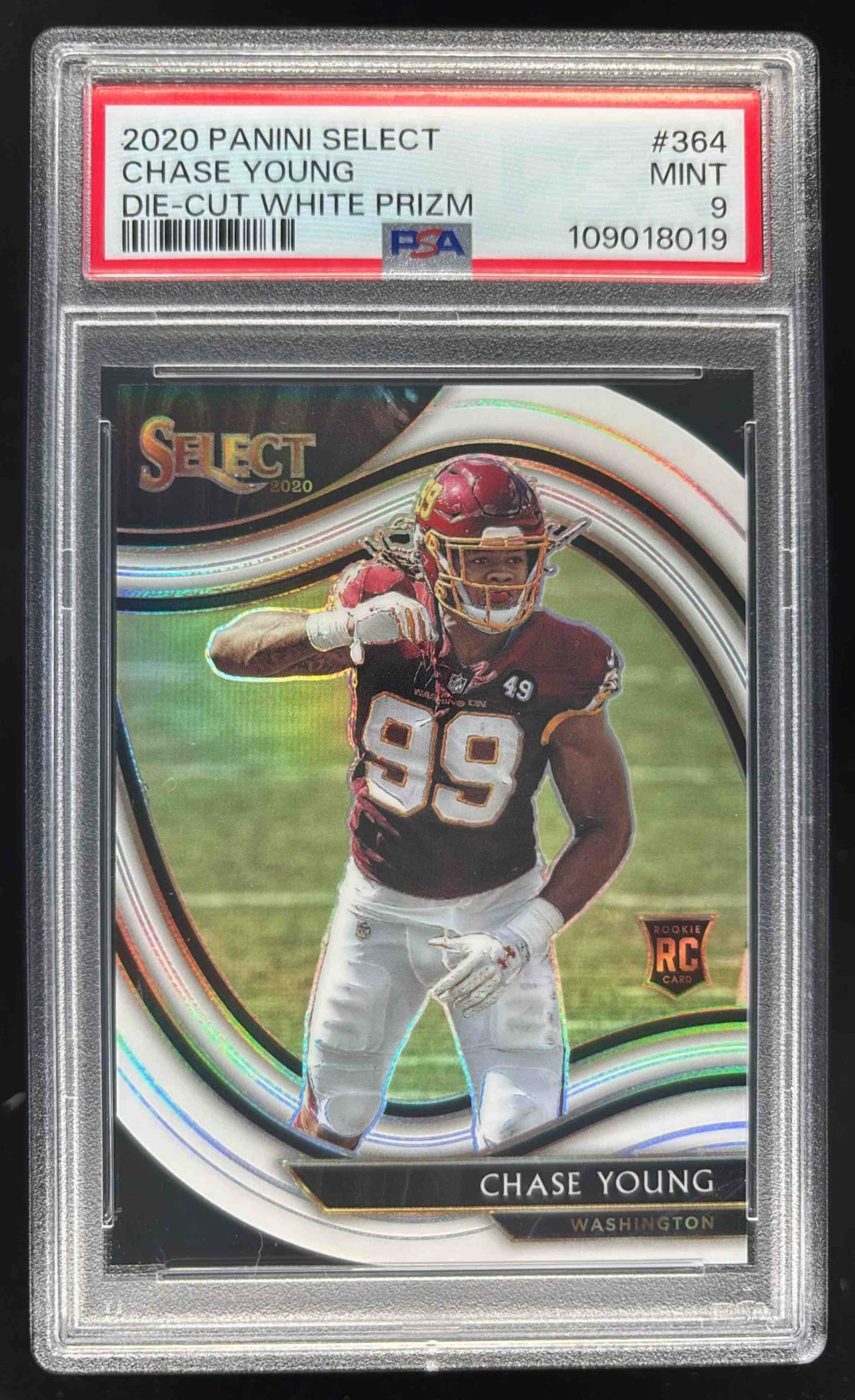 2020 Panini Select White Prizm Die Cut #364 Chase Young Field RC PSA 9