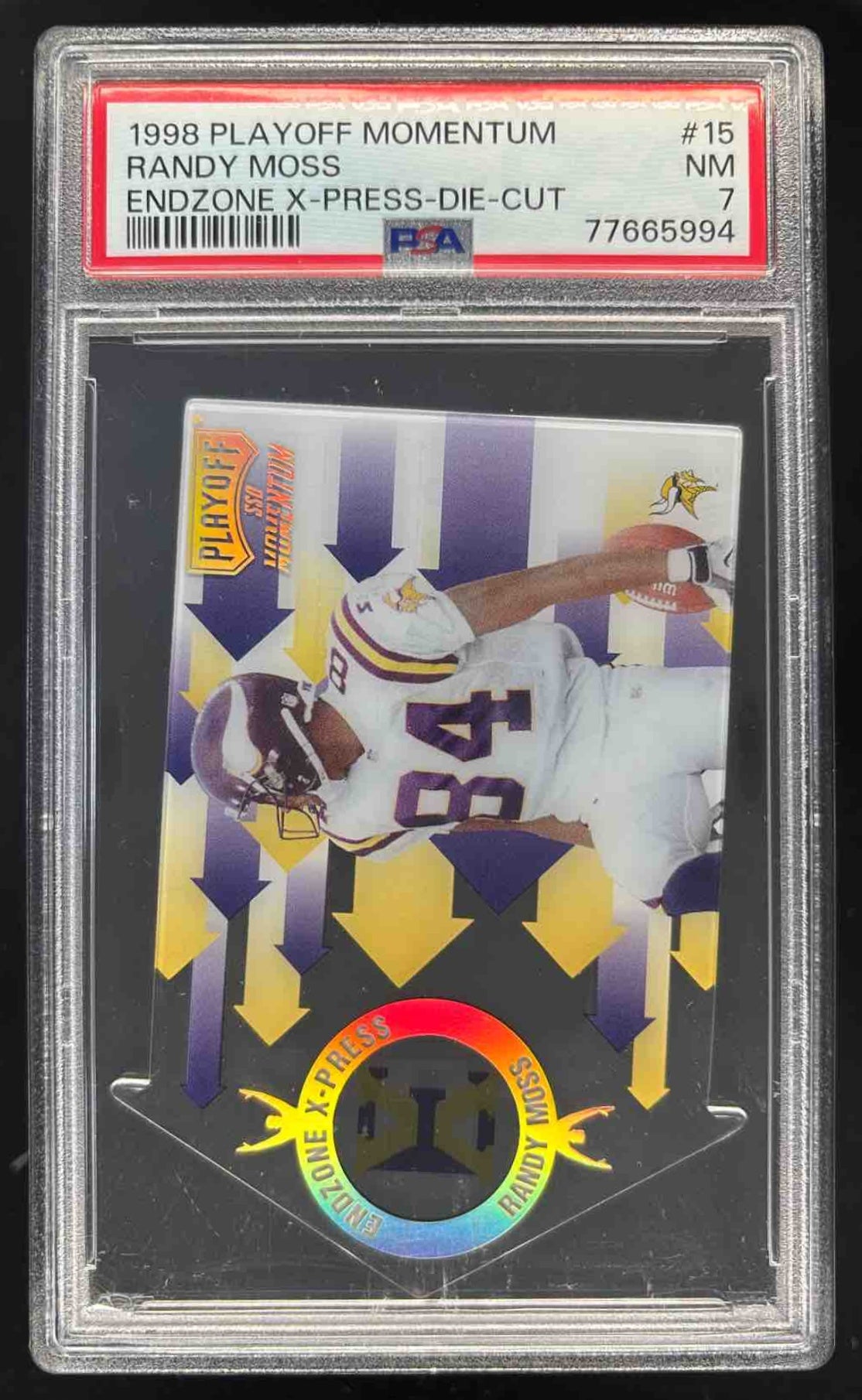 1998 Playoff Momentum SSD Hobby Endzone X press #15 Randy Moss PSA 7