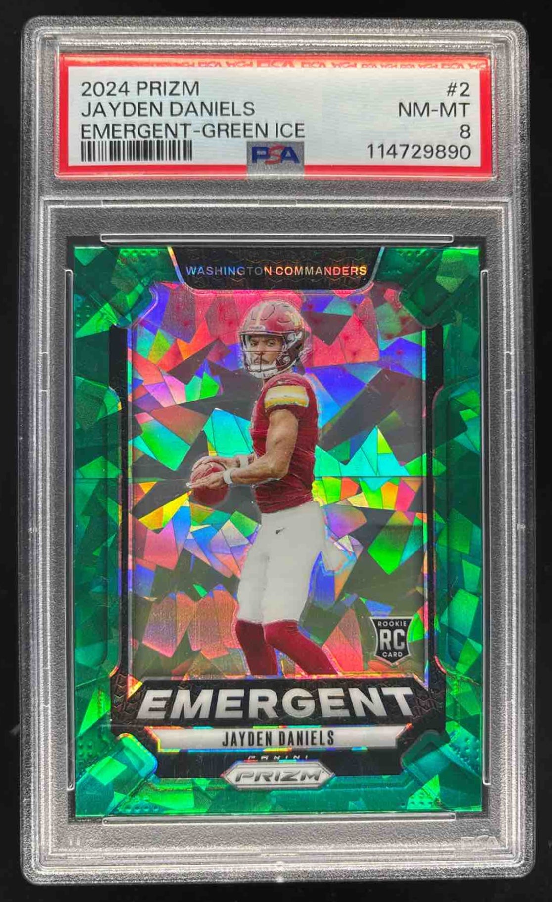 2024 Panini Prizm Emergent Green Ice Prizm #2 Jayden Daniels RC PSA 8