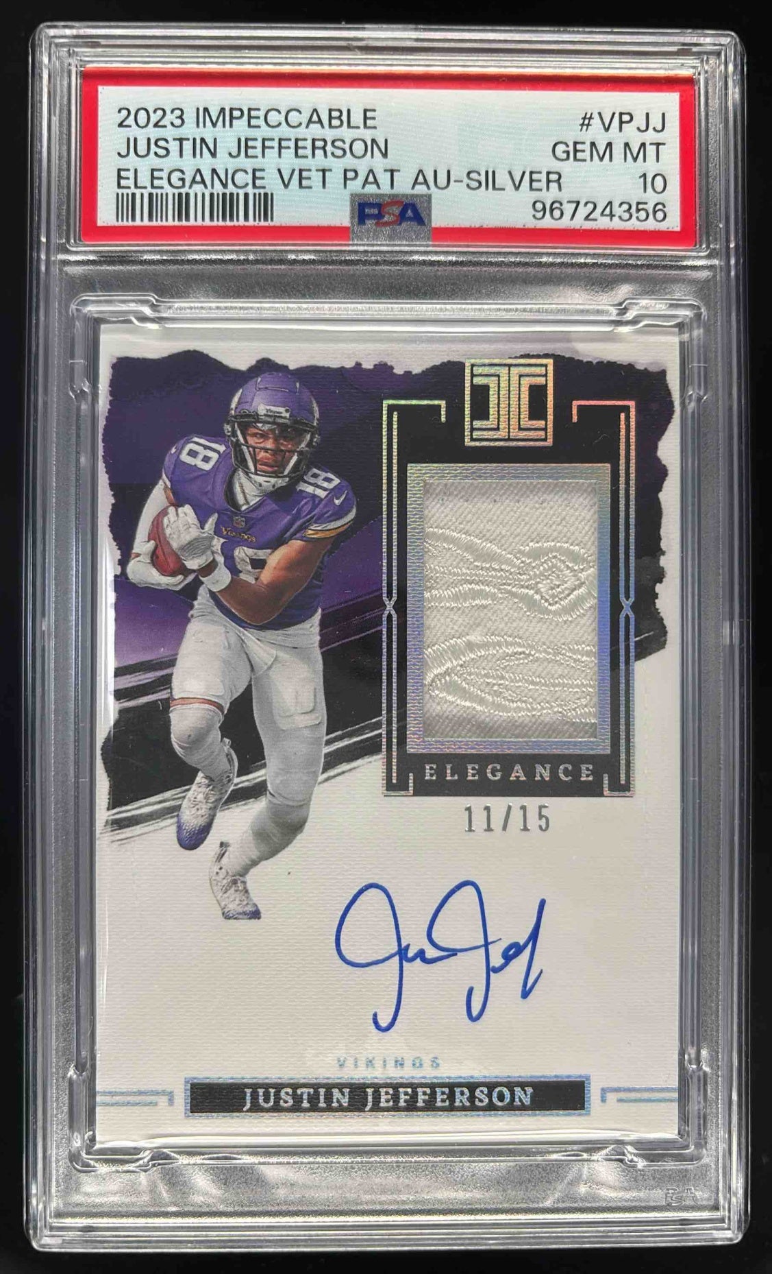 2023 Impeccable Elegance Veteran Patch Silver Justin Jefferson Auto /15 PSA 10